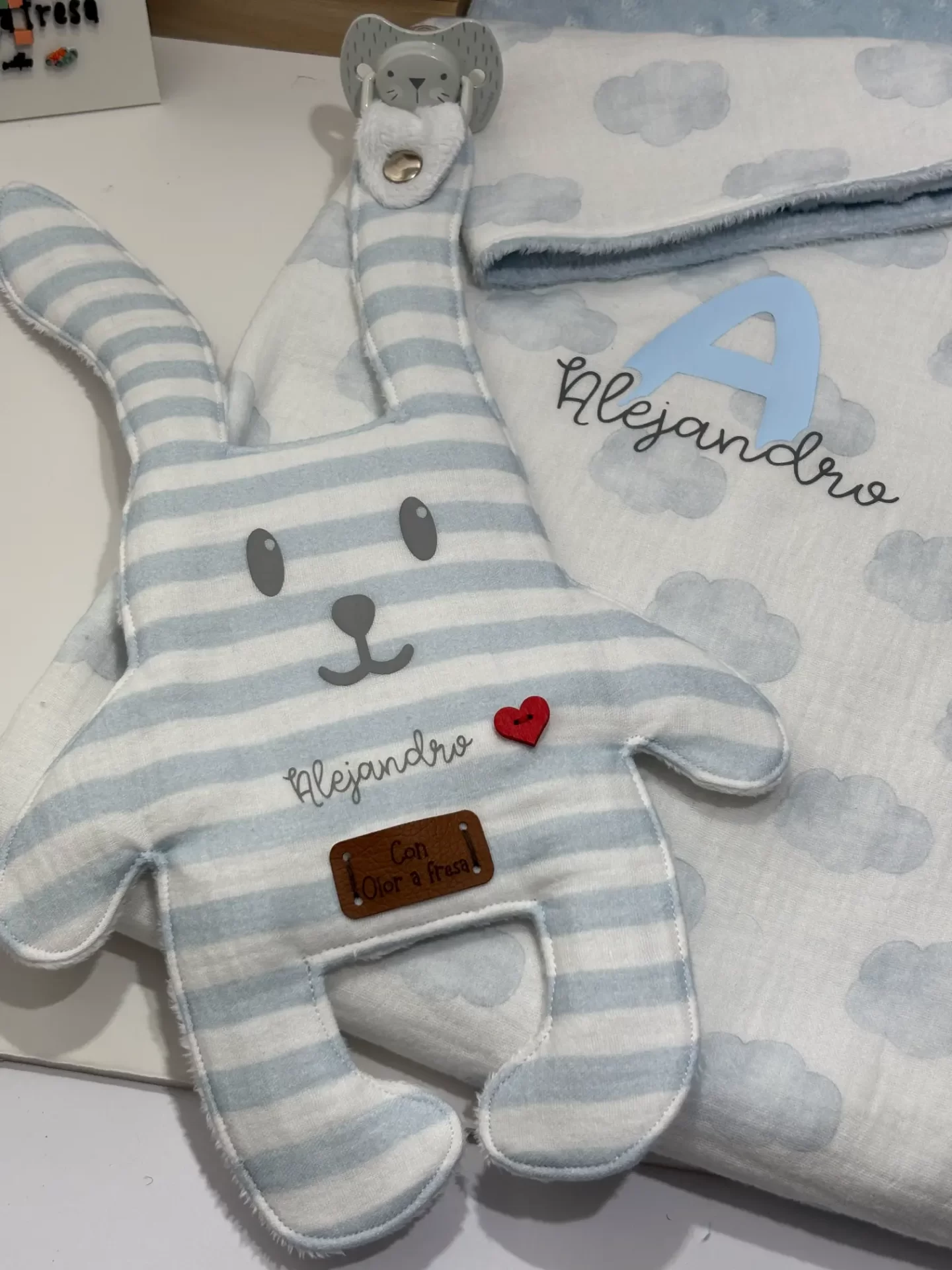Este muñequito hará una doble función, sujetar el chupete de tu peque a la vez que le da seguridad cuando se acurruque junto al trapito.